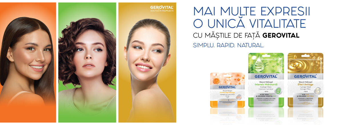 Noile măști Gerovital sunt produse inovatoare, realizate cu tehnologia DermoScience Cryo Effect, un hidrogel special care, prin conținutul optim de ingrediente active de origine naturală, ajută la menținerea și îmbunătățirea aspectului pielii. Inspirate de experiența în produse anti-îmbătrânire a brandului Gerovital, cele trei produse dedicate tenului și ochilor sunt potrivite pentru orice vârstă, pentru un plus de hidratare și un moment de răsfăț.