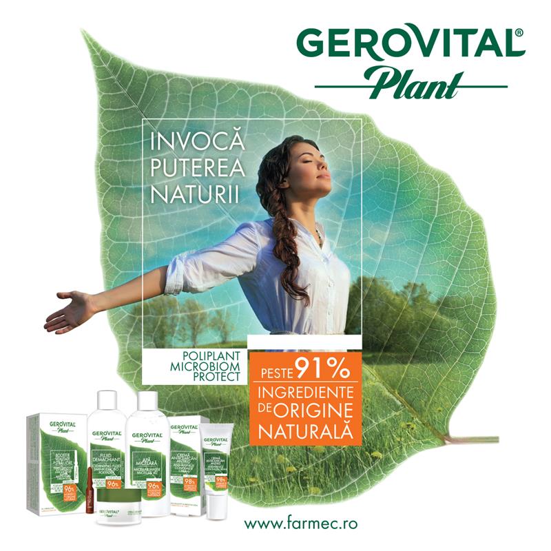 “Gerovital Plant este o gamă cu o istorie de peste 30 de ani pe piața locală, ce s-a bucurat de aprecierea constantă a consumatorilor, datorită numeroaselor modernizări care au urmărit atât tendinţele internaționale de consum, cât și nevoile consumatorilor noştri și valorile în care credem, în special îmbinarea tradiției cu inovația. Astfel, am relansat gama Gerovital Plant, o linie marcantă a portofoliului brandului Gerovital, într-o formulă nouă şi originală. Suntem mândri să anunțăm că prima gamă fară conservanți, are acum peste 91% dintre ingrediente de origine naturală, oferind protecție naturală microbiană. Ultima etapă de modernizare a avut loc în 2016 și ne-a adus distincția de cea mai iubită gamă, un premiu care a întărit faptul că Gerovital reprezintă excelența românească în cosmetică. Suntem siguri că, în noua versiune, linia va fi şi mai apreciată de piață, datorită beneficiului care o diferențiază în segment – asigurarea în mod natural a echilibrului microbiomului la nivelul pielii, prin respectarea identității unice a acestuia”, a declarat Claudia Pălăcian, Manager de Produs.