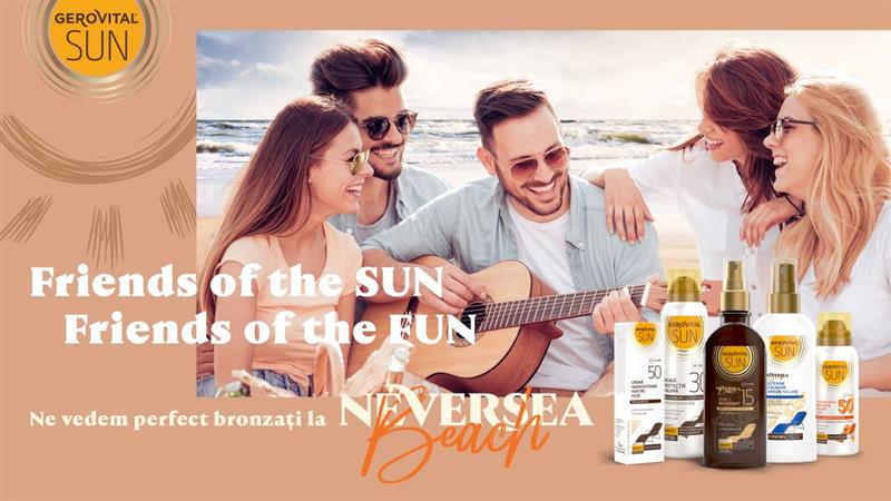 , „Mai ales după un an precum cel precedent, ne bucurăm să fim prezenți la Neversea Beach, un loc menit să ofere experiențe de vară inedite, dar și momente de relaxare într-un cadru spectaculos, și să susținem bucuria consumatorilor noștri față de mare și de soare cu o gamă completă de produse solare. Am programat, în acest sens, acțiuni periodice de sampling cu minimostre și produse esențiale de îngrijire, derulate chiar pe plajă, precum și cu o tombolă prin care trimitem săptămânal noi împătimiți de soare pe plajă. În plus, produsele Gerovital Sun vor fi disponibile întregul sezon la punctele de vânzare din perimetrul Neversea Beach”, a declarat Ruxandra Macovei, Specialist Marketing.
