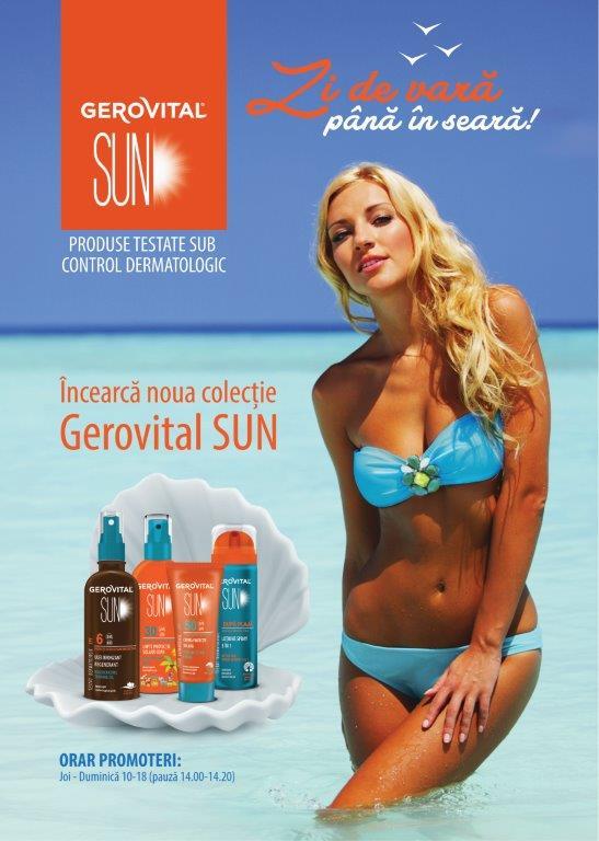 La promoție participă toate cele 18 produse din gama Gerovital Sun.