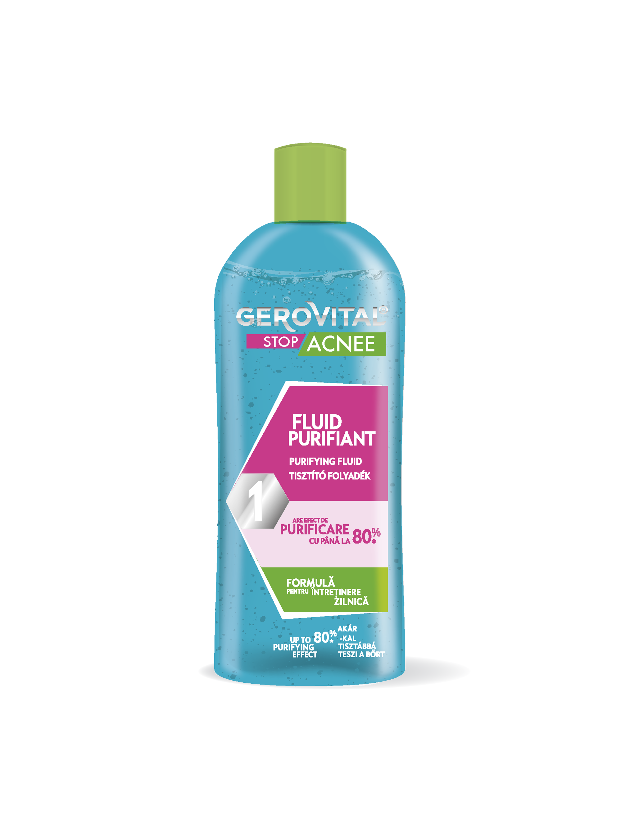 Fluidul Purifiant Stop Acnee, cu rolul de a proteja tenul cu tendinta acneica impotriva proliferarii microorganismelor si a declansarii procesului inflamator, impotriva excesului de sebum, a deshidratarii, precum si impotriva persistentei petelor pigmentare postacneice. Aplicati apoi