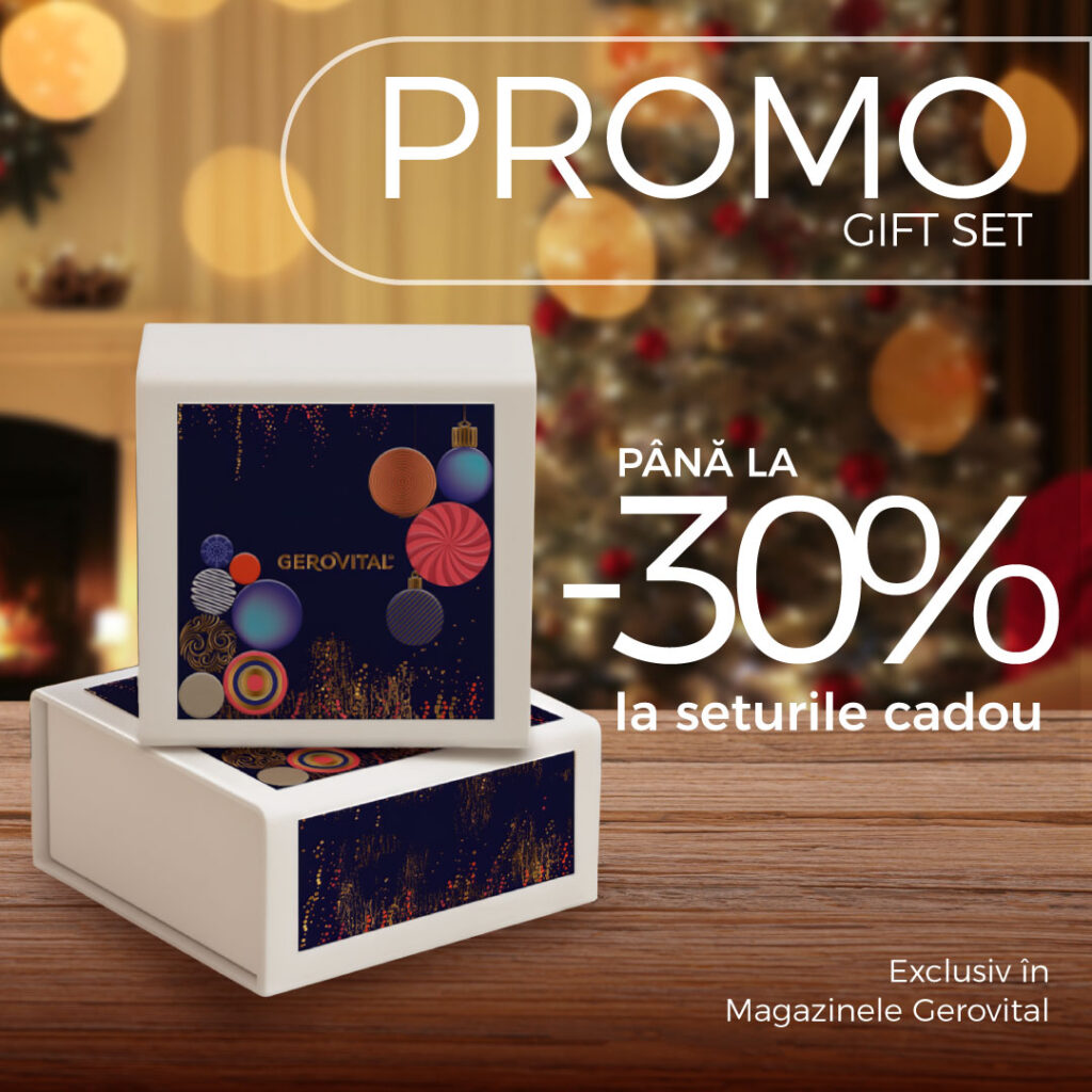 În magazinele Gerovital sau pe farmec.ro te așteaptă seturi pentru sau pentru ea cu DISCOUNT de 30% și primești și o cutie de împachetare premium cu tematică de Crăciun.