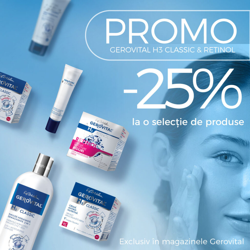25% DISCOUNT la o selecție de produse din gama Gerovital H3 Classic și Retinol.